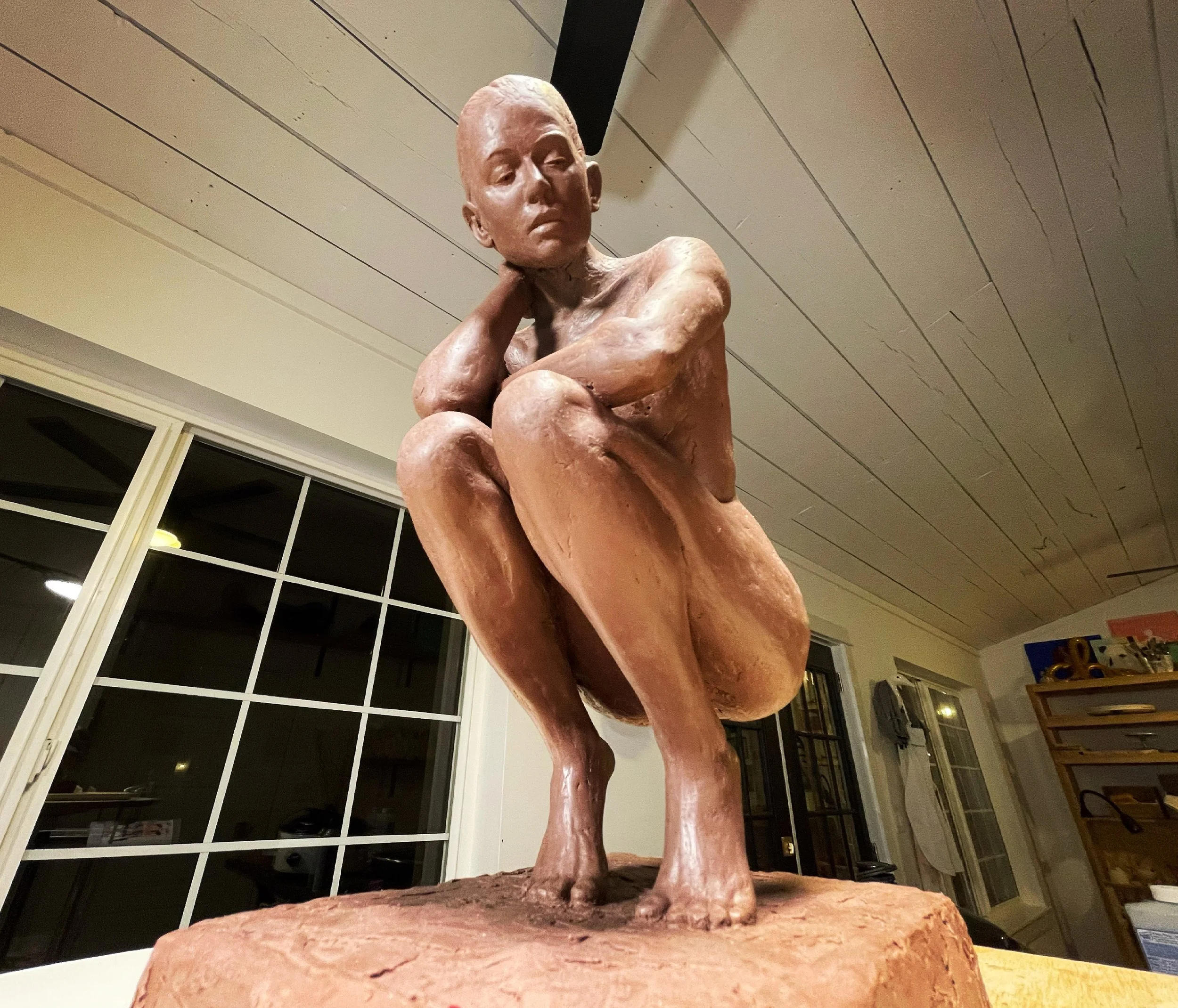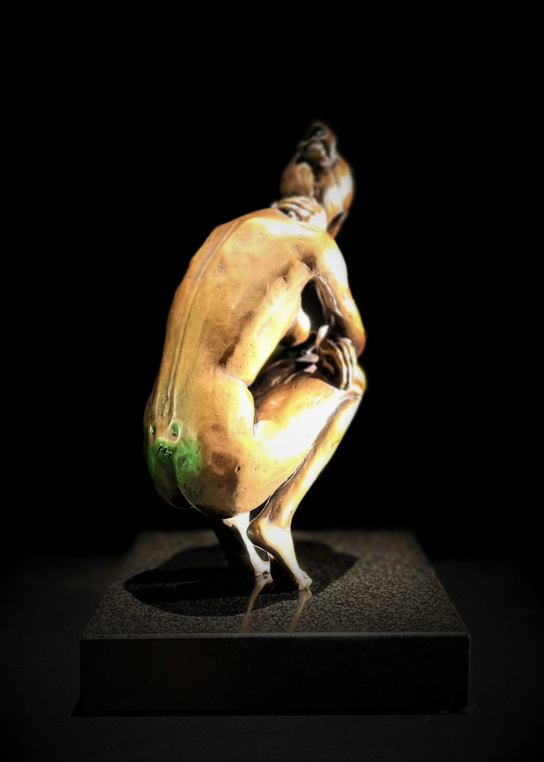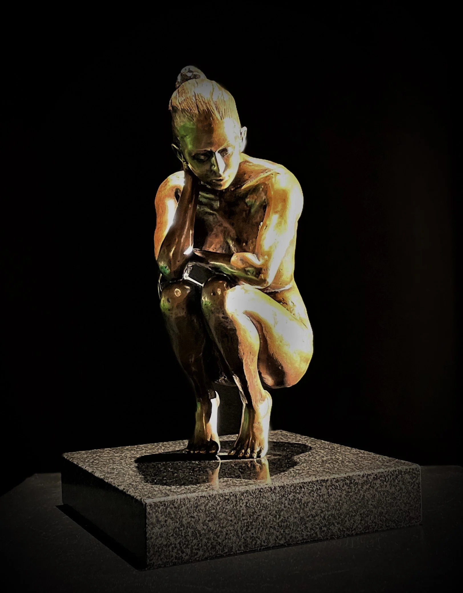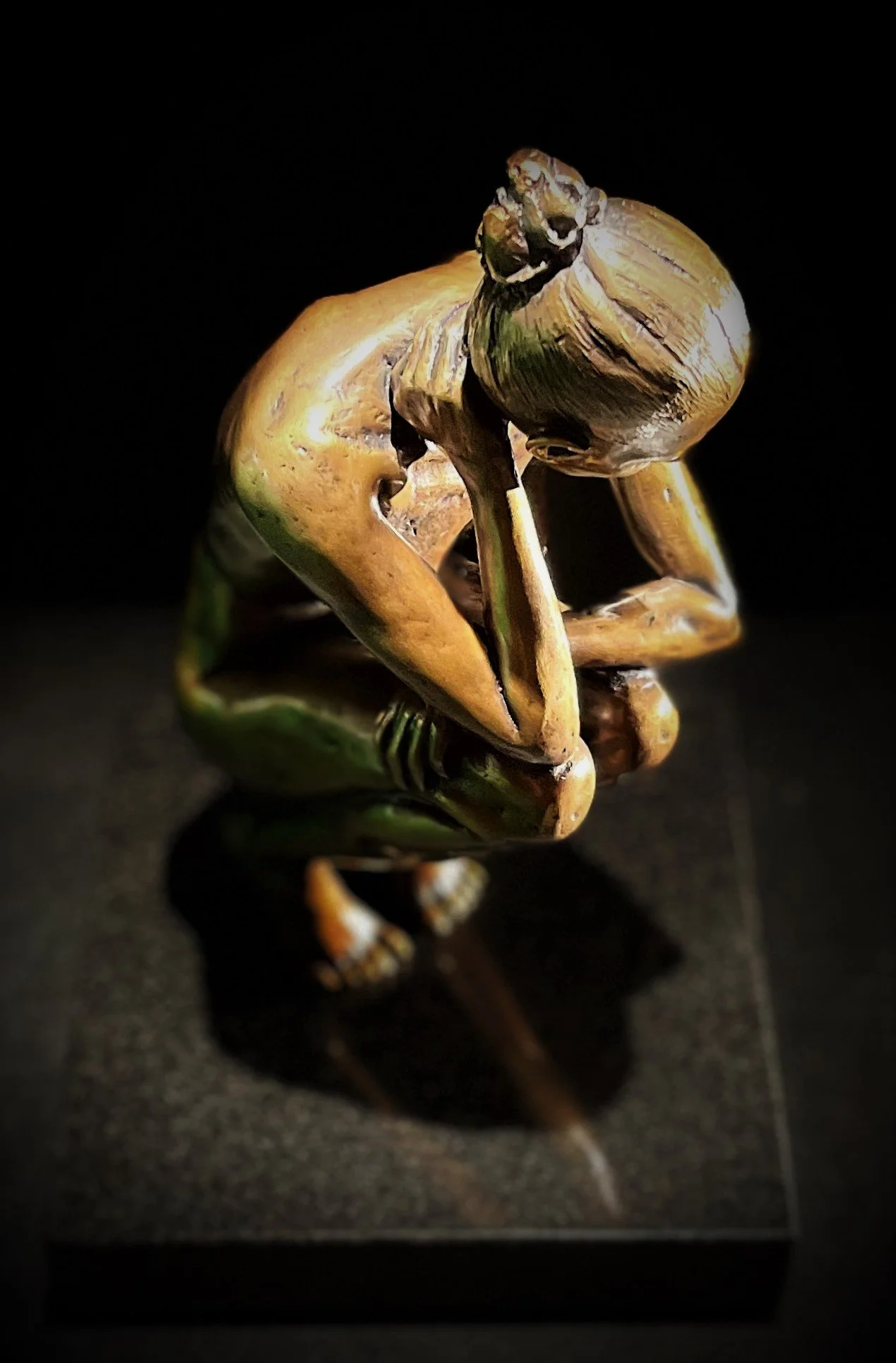 This piece was inspired by my daughter (as with many of my sculptures) and her move to Brooklyn, NY. The sculpture was first displayed in a gallery in Coeur d’Alene and was installed in a 4’, brighly lit cube with the front face of the cube open to the viewer. The intention was to give a sense of infinite space around the small sculpture. Opposite of this, was another installation of the same sculpture but in a very small box to symoblize claustrophobia.