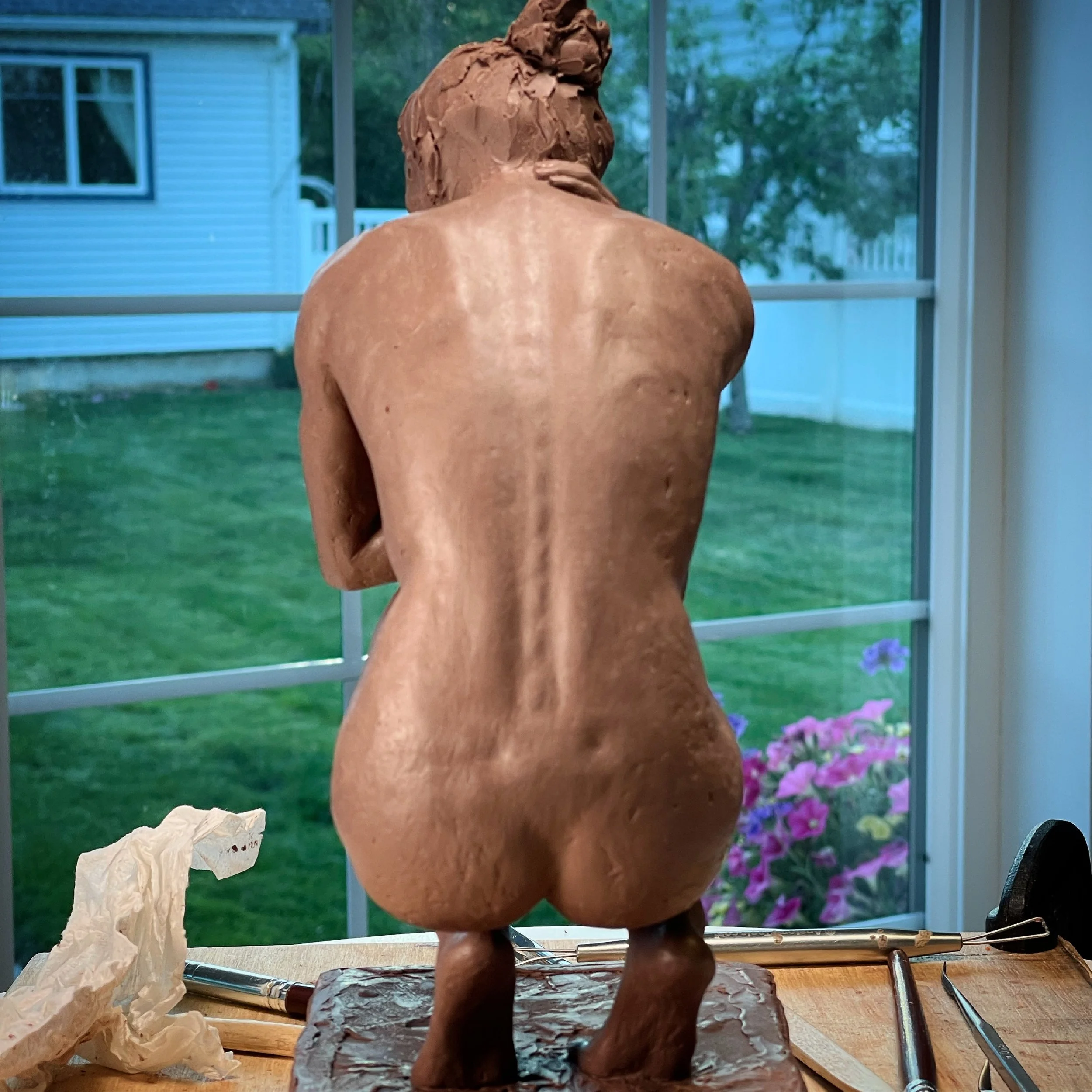 The first phase of a sculpture is construction of the armature at the chosen scale. This timelapse is of the second phase: blocking-in of the shape.