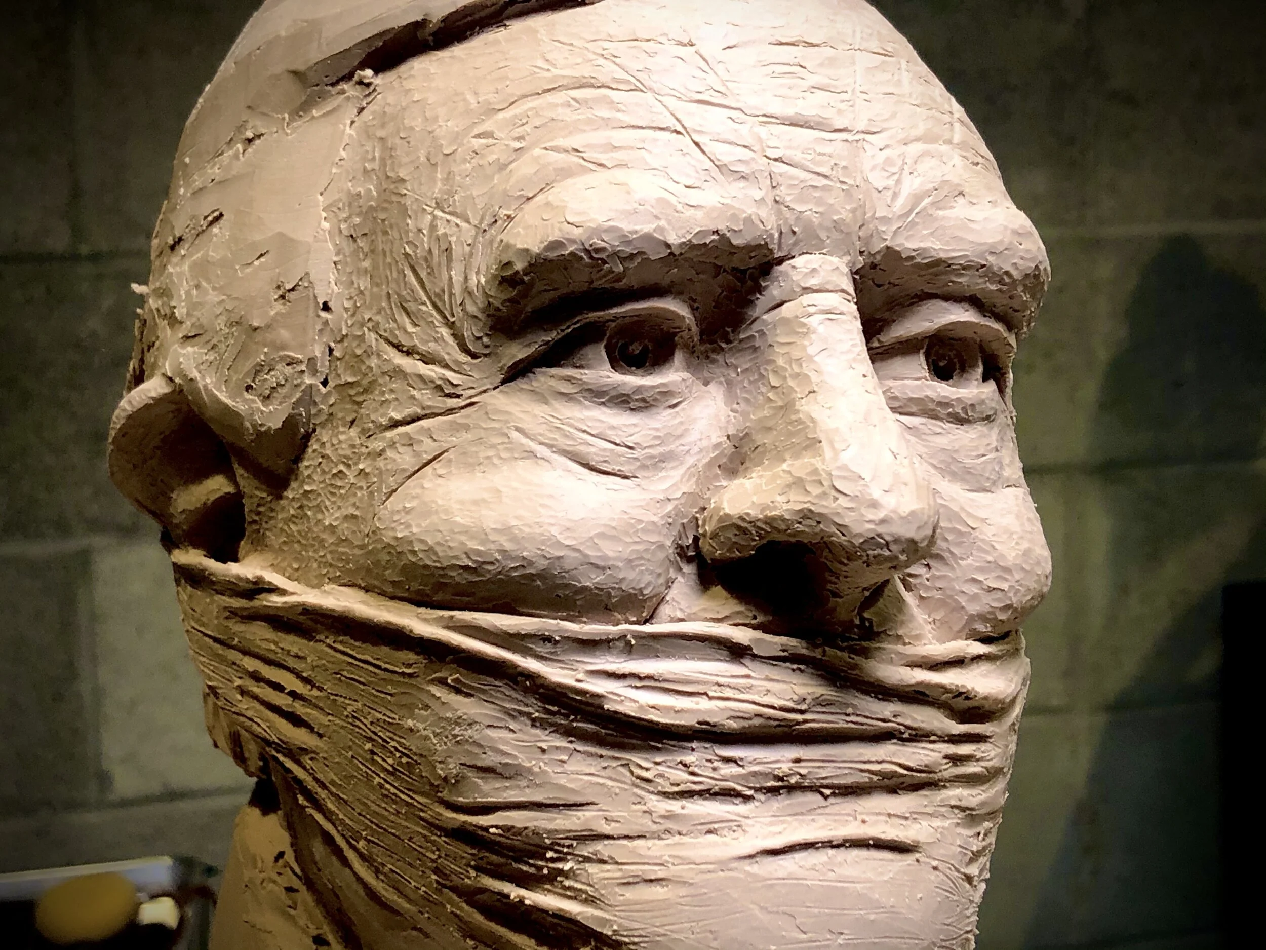 This sculpture is a head study completed during a group sculpting session held at Terry Lee Studio in Hayden, Idaho. In addition to the primary goal of working with shapes and planes, I was able to experiment with a variety of textures in an effort to find my voice and style. Dwayne is a wonderful man/model and this piece was received by him all in good fun! The scale is 75% life-size, and the casting will stand about 14” tall and extend about 8” deep and wide.