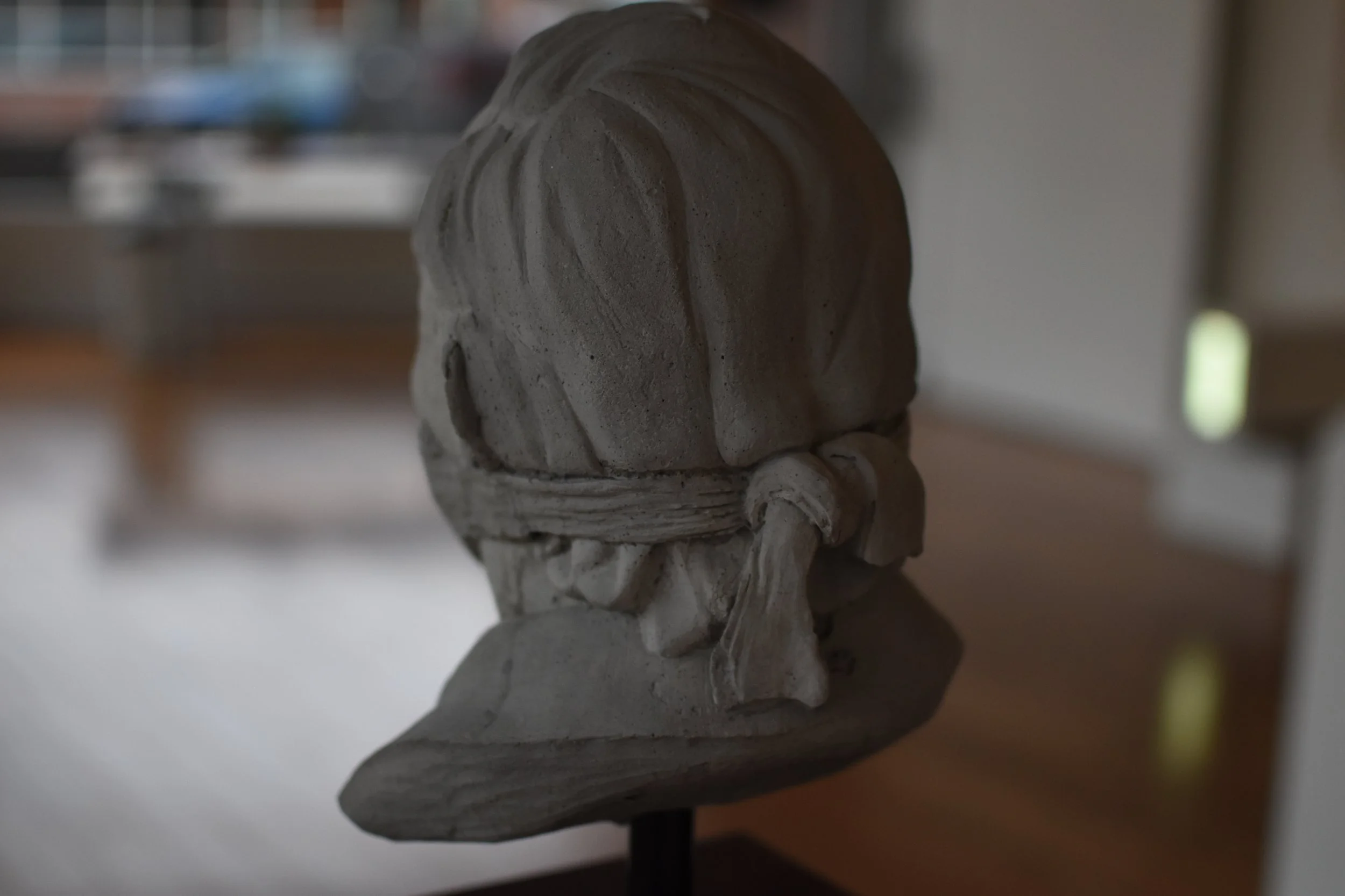 Medium: concrete on a walnut base Size: 14” tall, 8” wide, 8” deep