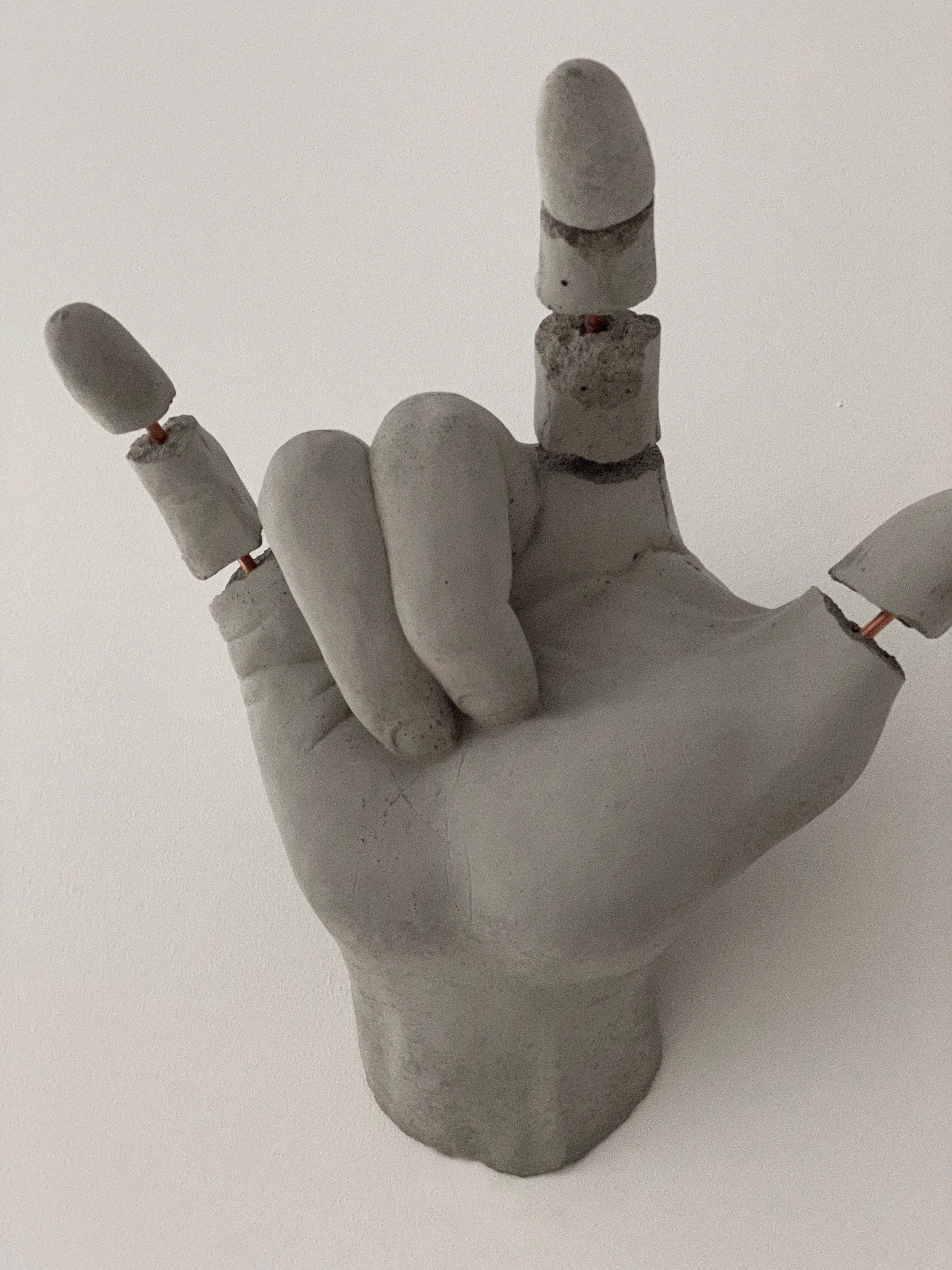 This special edition signifies, “I love you despite brokenness…” It is cast in concrete, then broken and sections are removed and reconnected with copper armature. We all know this story.