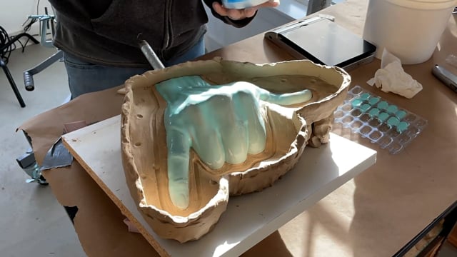It is a wall-hanging sculpture and is cast in plaster, or upon request, in bronze.